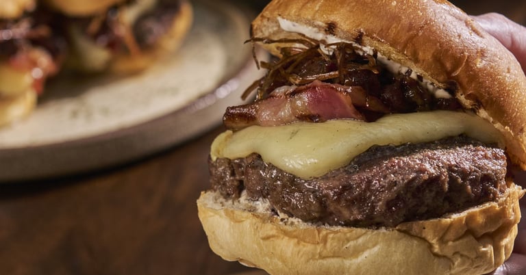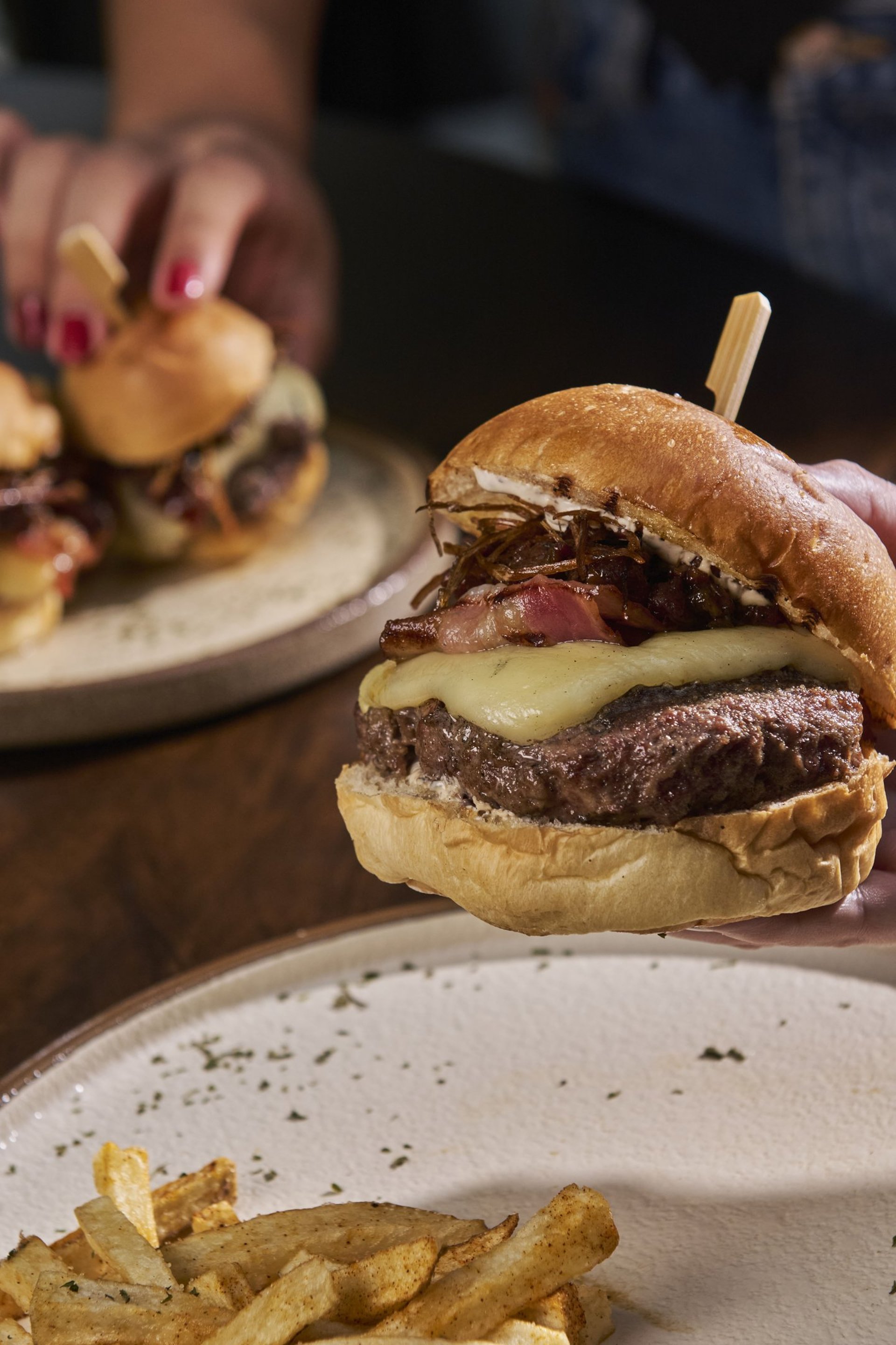 Preparamos hamburguesas con carne 100% angus y receta de la casa, pan suave y combinaciones equilibradas.
